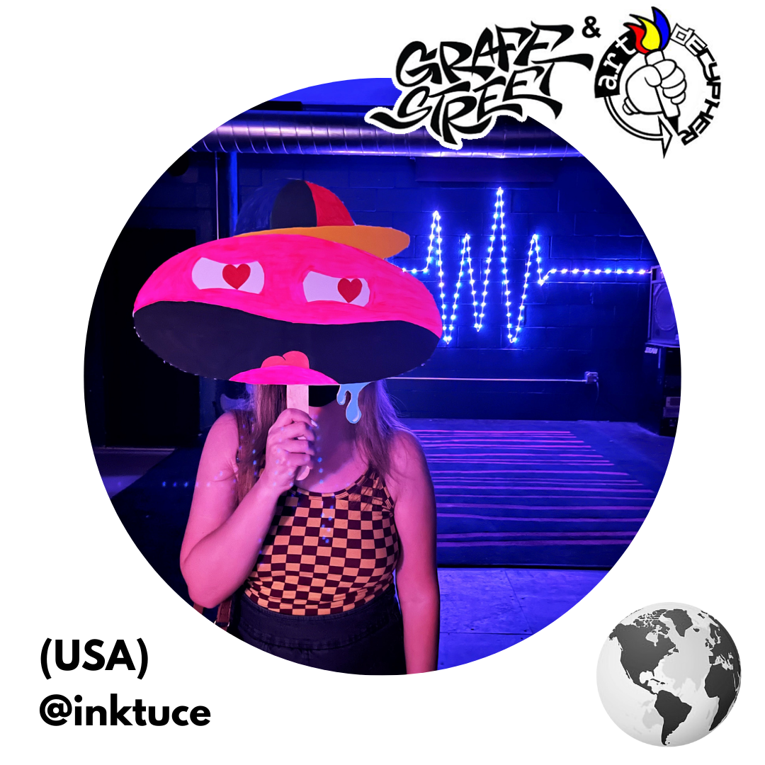 Inktuce is a Tucson-based artist and creator of unique, colorful characters. They dabble in many different mediums including oil and acrylic painting, digital illustration, collage, and block printing. Inktuce may be your neighbor, or even your closest friend.