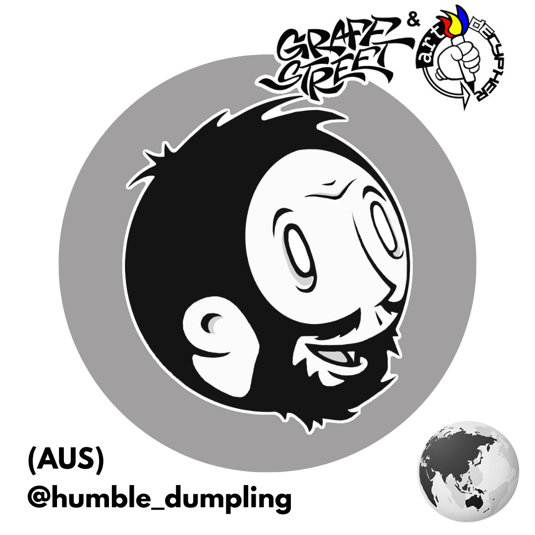 Humble Dumpling is a multi disciplinary visual artist and musician with 20 years worth of street art shenanigans under his belt. Illustrator. Zine maker. HipHop lyricist. Sculptor of ceramic and wood. Crafter of stickers, wheat pastes and stencils. Vandal. His work explores a variety of recurring themes including, identity, the natural world, the nascent emergence of machine intelligence and good old fashioned aesthetic whimsy. If you stroke his ego just right he'll probably give you free art.