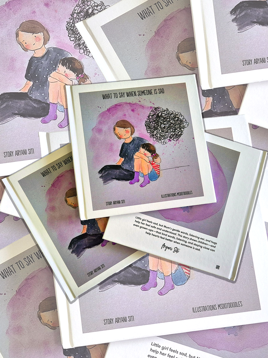 Title/Artist: What to Say When Someone is Sad by Aryani Siti. Illustrated by Msdotdoodles.