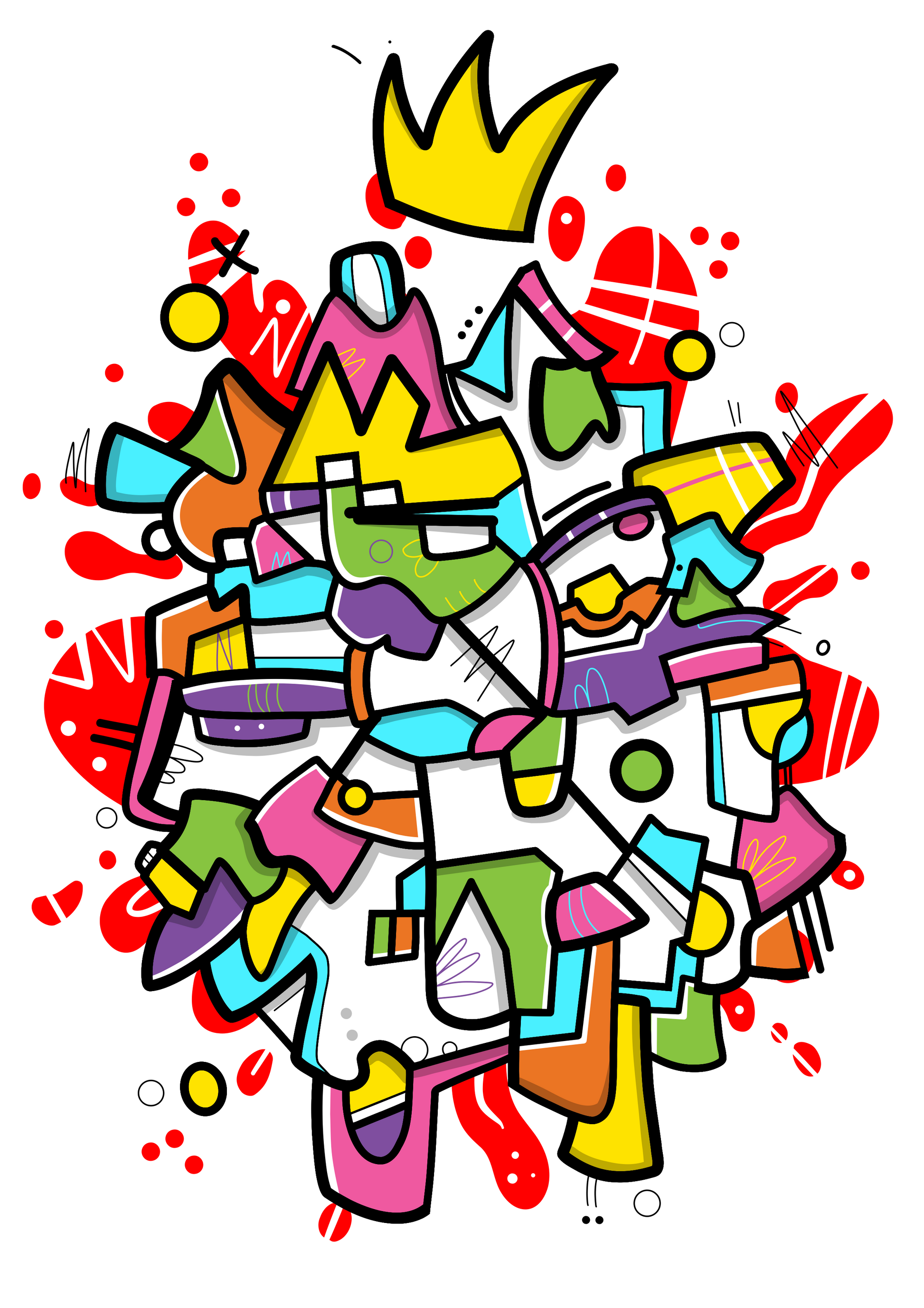 Rukz One was born and raised in the Western Suburbs of Melbourne, Australia. Often described as unique and polarising, he (and his art) swings between the simple and the complex. His art draws inspiration from skateboarding, hip-hop, the Melbourne street art/graffiti culture, and humanity.